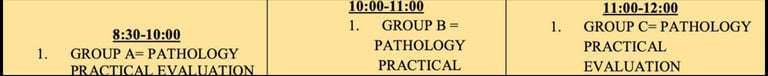 Each day is dedicated to a single subject, enabling students to concentrate fully on one area of study at a time. For example, one group might be scheduled for a Physiology Viva, while another group focuses on their Anatomy Viva.